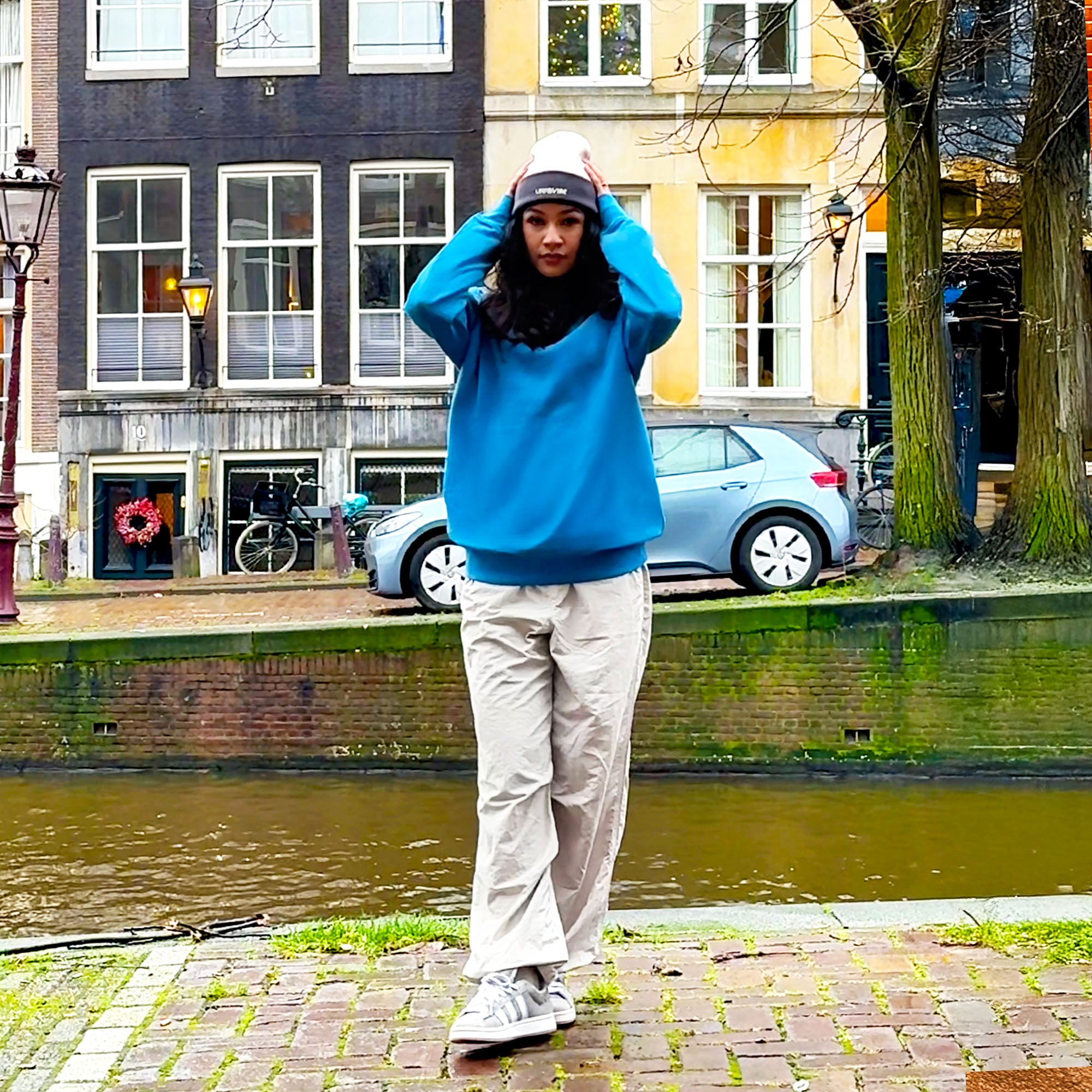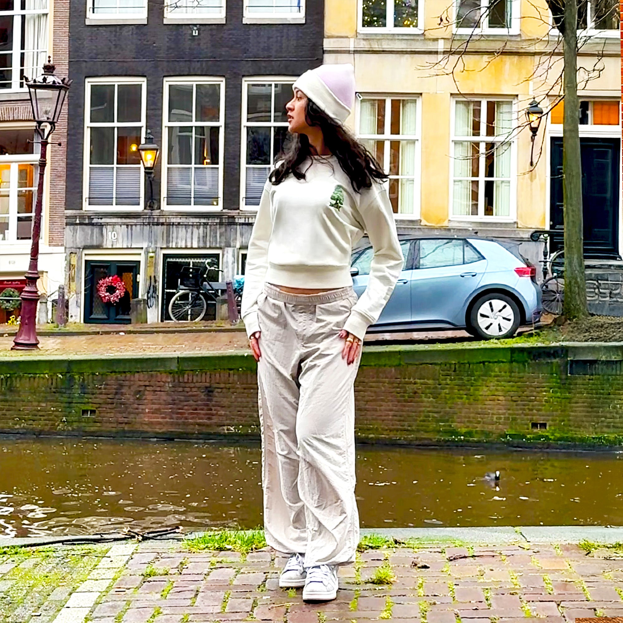 One of Nina’s favorite memories: “Those moments we spent on the canals of Amsterdam in the cold winter with UNIQVIBE’s warm sweatshirts were unforgettable. Comfortable, stylish, and eco-friendly! 💚